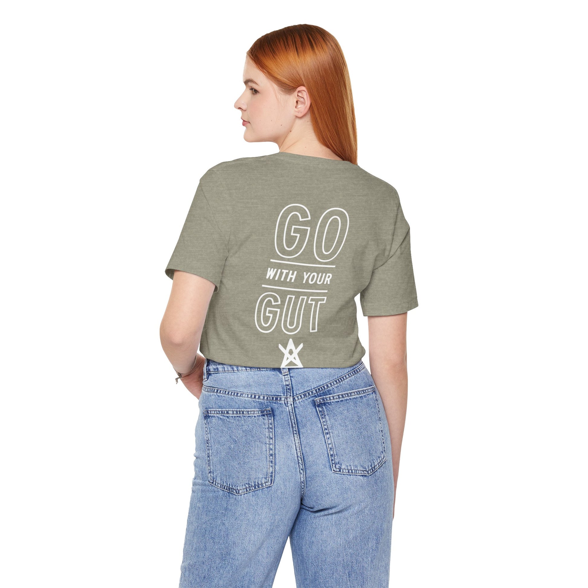 "Go With Your Gut" and grab this tee! It’s super soft and fits like a dream. The ultimate combo of comfort and confidence, all in one stylish package.